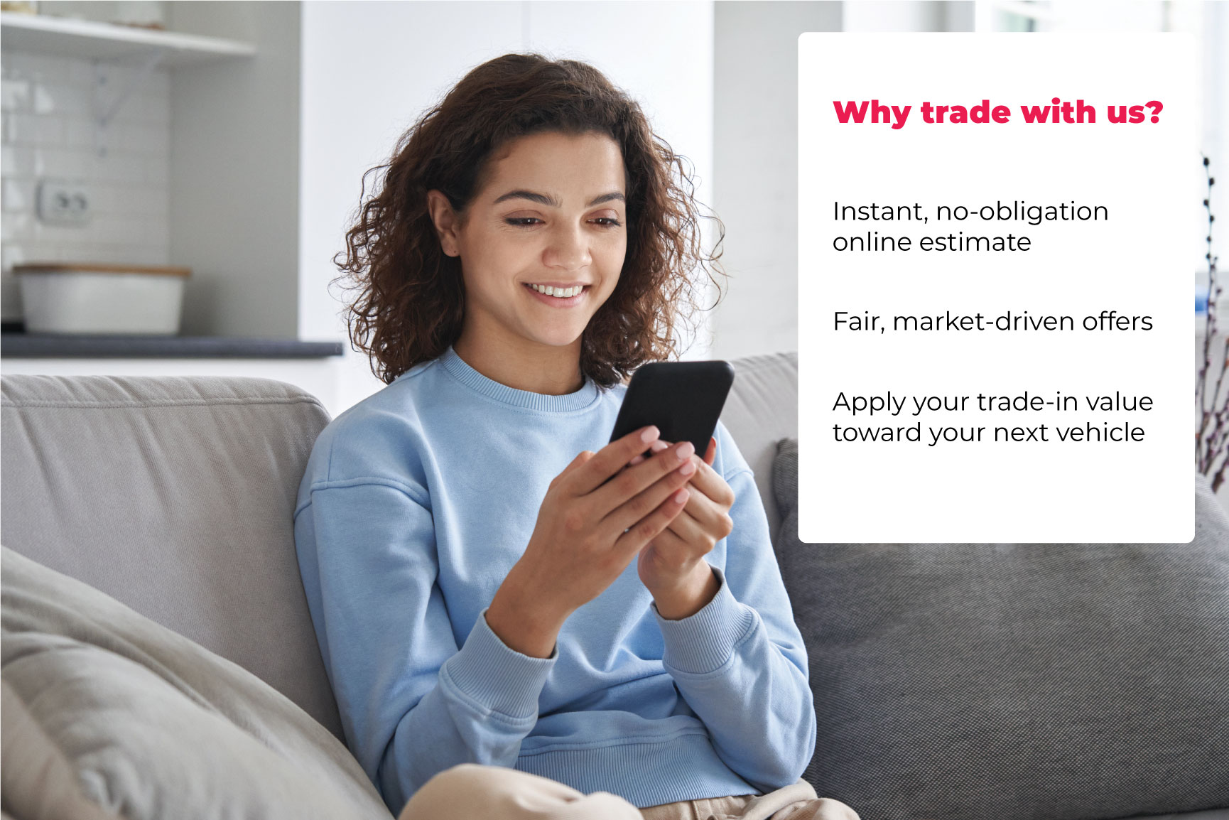 Using the latest market data, our system generates a fair trade-in value for your vehicle.